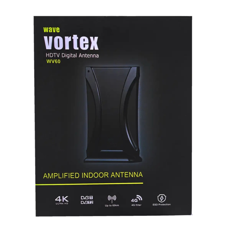 ضمنا آنتن برقی WV-60 مجهز به فیلتر 4G جهت حذف پارازیت هایی است که مانع دریافت سیگنال درست به دستگاهها میشود. از طرفی برای این منظور و جهت دریافت سیگنالهای بسیار ضعیف دارای تقویتکننده کم نویز با بهره 32db میباشد. همچنین دارای پهنای باند وسیعی است که برای تمام استانها مناسب باشد. آنتن رومیزی ورتکس مدل WV-60 مدل تقویت یافته WV-40 است. در این مدل طول کابل به 3 متر افزایش یافته و نیز چراغهای LED کوچکی برای نشان دادن اتصال به برق این دستگاه تعبیه شده است. مصرف برق 0٫4 وات برای این آنتن برقی باعث شده لقب کم مصرف ترین آنتن برقی به این نوع اختصاص یابد. برای انواع تلویزیون های LED و LCD ،گیرندههای دیجیتال و گیرندههای PC سازگار بوده و تصویر فوق العاده شفاف 4K را ارائه میدهد.
