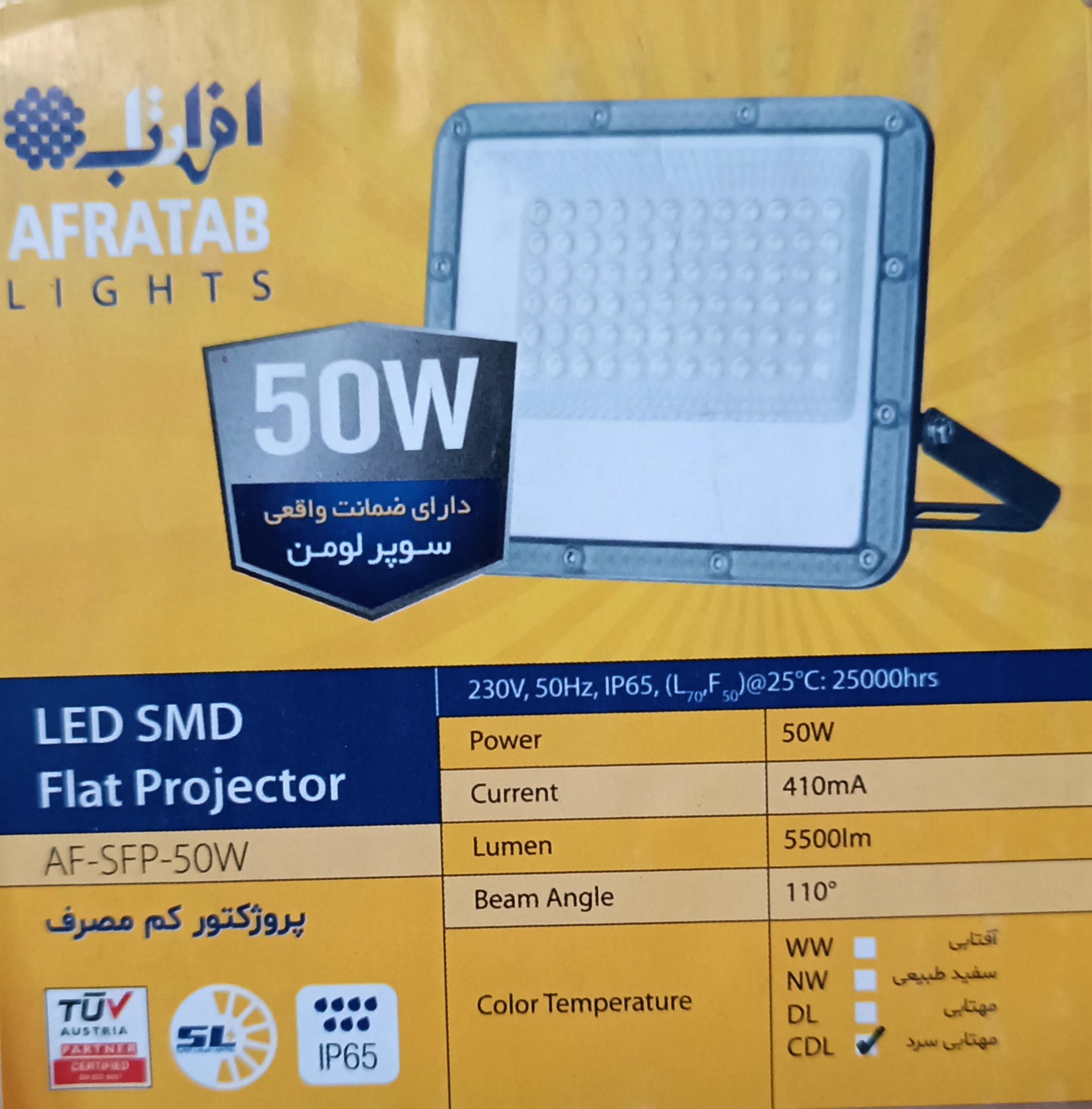 پروژکتور 50 وات فلت (افراتاب)