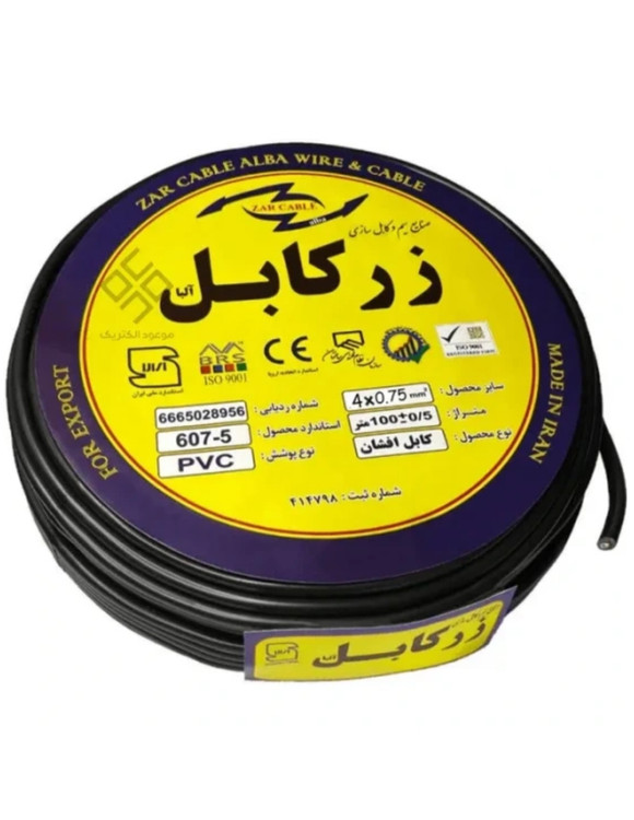 کابل برق افشان 4 در 0.75 زرکابل آلبا یک کابل انعطافپذیر با چهار رشته سیم افشان است که هر رشته سطح مقطع 0.75 میلیمتر مربع دارد. این کابل معمولاً برای مصارف عمومی و سیمکشی ساختمانها استفاده میشود، به دلیل انعطافپذیری بالا، نصب آسانتری دارد.