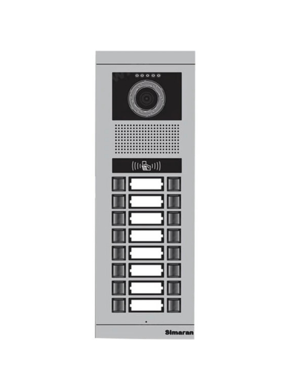 پنل آیفون تصویری 16 واحدی کارتخوان فرداد سیماران مدل Simaran VFBC16D/N مجهز به کارتخوان می باشد و قابلیت استفاده از کارت یا تگ جهت باز کردن در را دارد و مجهز به دوربین CCD رنگی با 1.4 اینچ و با رزولوشن بالا، با قابلیت تنظیم دید در چهار جهت بوده و مجهز به سیستم قوی دید در شب با استفاده از LED oval می باشد. همچنین این پنل دربازکن دارای کلیدهای نورانی به منظور استفاده آسان تر در شب می باشد. پنل فرداد به صورت یک پارچه از آلومینیوم آبکاری شده که این باعث مقاومت پنل در برابر رطوبت می شود. تغذیه مورد نیاز پنل فرداد 12VDC-180mA می باشد. دمای عملکرد پنل بیرونی سیماران مدل فرذذ 70+ تا 25- درجه سانتی گراد می باشد. در پنل فرداد آیفون تصویری سیماران امکان تنظیم صدای میکروفون و بلندگو با استفاده از پتانسیومتر وجود دارد.
