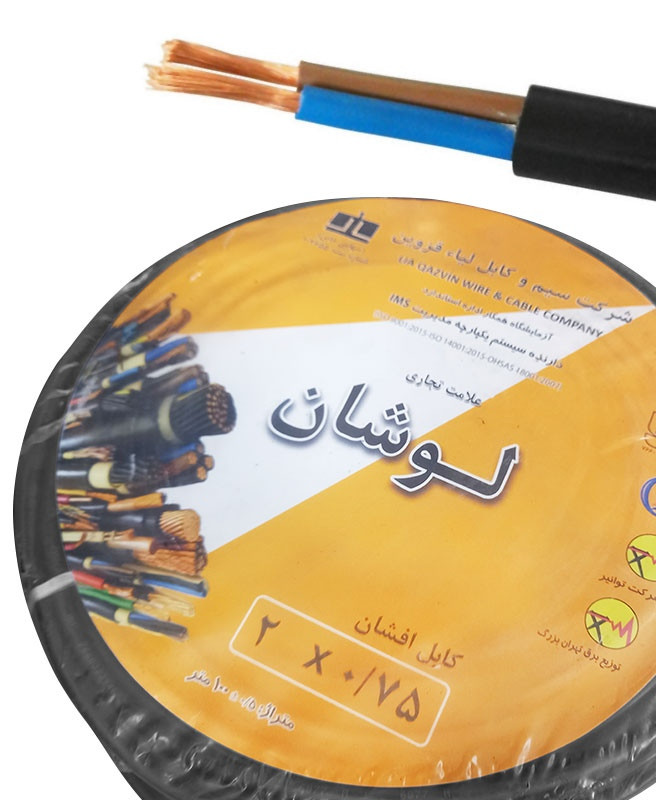 کابل برق افشان 2 در 0.75 لوشان حلقه 100متری