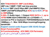 - 4کانال ورودی تصویر به صورت TVI/AHD/CVI: 5MP Lite@20fps; 4MP Lite,1080P,720P,WD1 real time