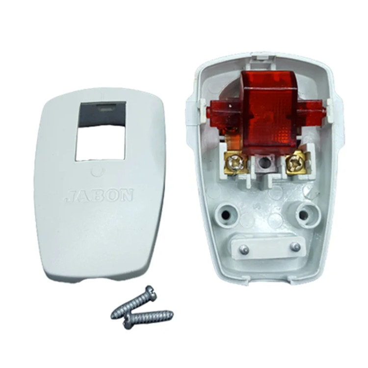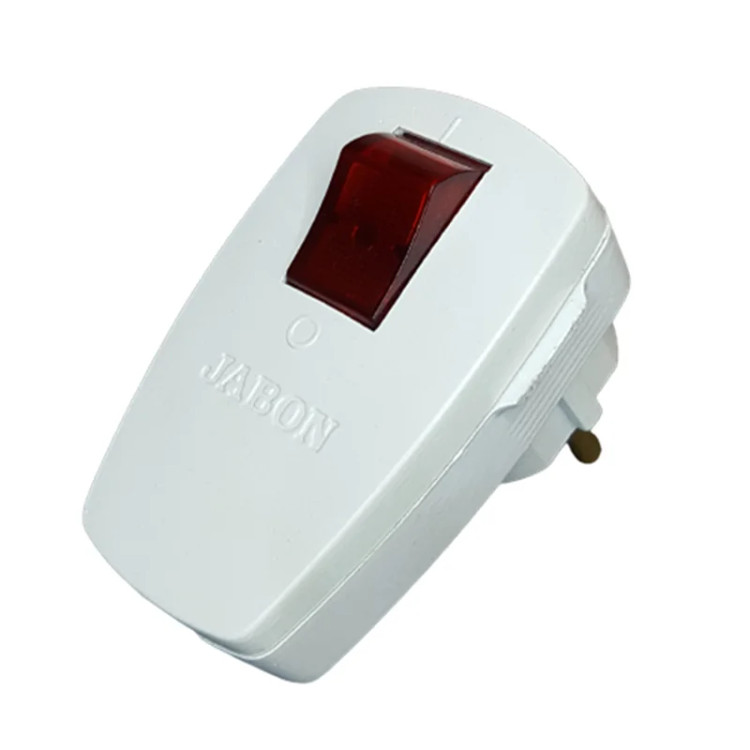 دو شاخه برق کلید دار JABON ارت دار هم نقش یک برق رسان را در دستگاههای الکتریکی دارد و هم نقش یک کلید برق را دارد و برای قطع و وصل جریان الکتریکی استفاده میشود. این دو شاخه دارای کلید چراغ دار است که در صورتی که وصل باشد چراغ آن روشن است و در صورتی که قطع باشد چراغ آن خاموش است.