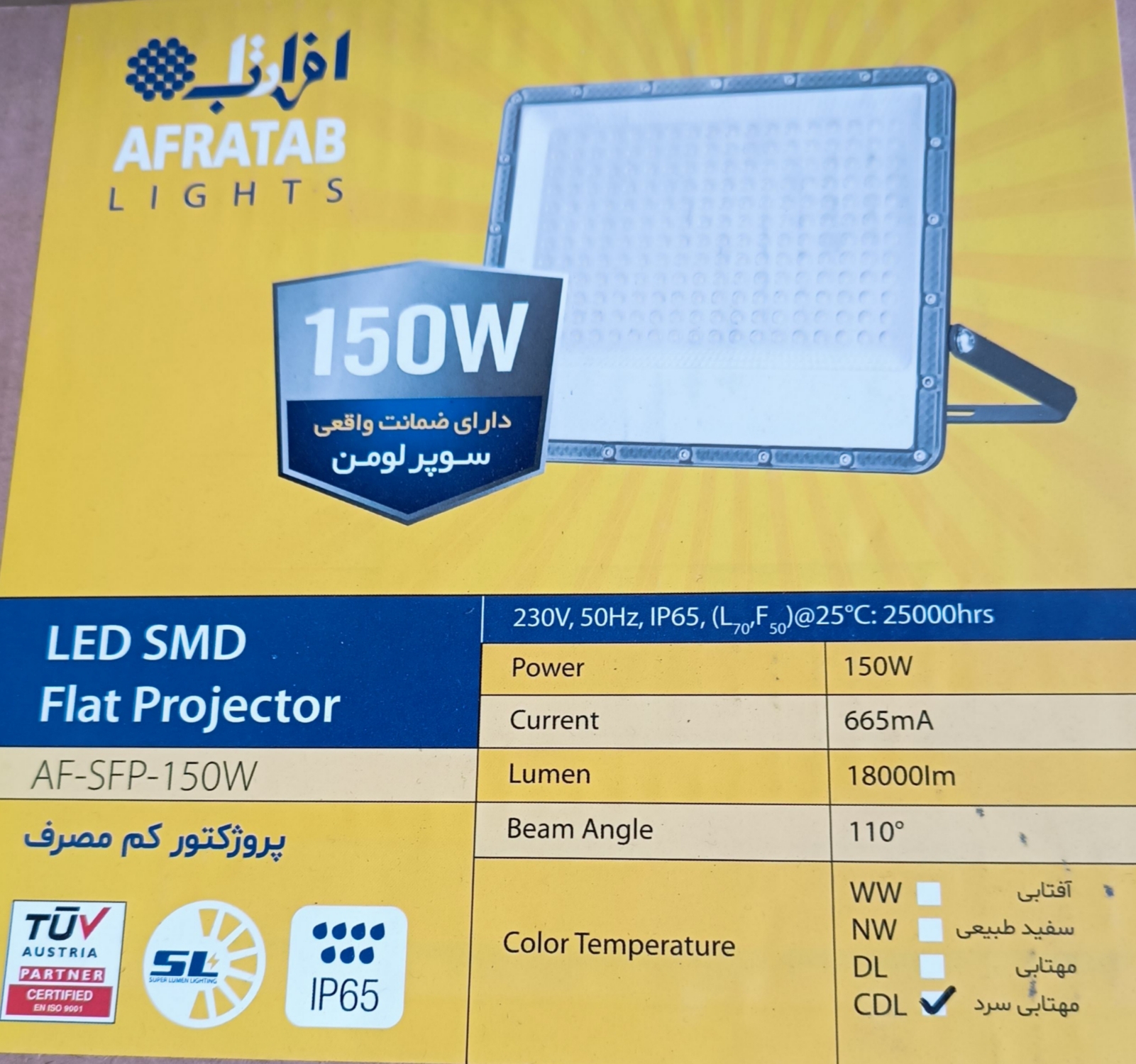 برند افراتاب همواره در تلاش است تا محصولات باکیفیتی را به بازار عرضه کند و پروژکتور 150 وات LED افراتاب نیز از این قاعده مستثنی نیست. این پروژکتور با استفاده از تکنولوژی LED و طراحی کاربرپسند، نوردهی عالی و مصرف انرژی پایینی دارد. بررسی پروژکتور 150 وات LED افراتاب نشان میدهد که این محصول به طور خاص برای استفاده در محیطهای داخلی و خارجی طراحی شده است و میتواند به راحتی نیازهای روشنایی کاربر را برآورده کند.