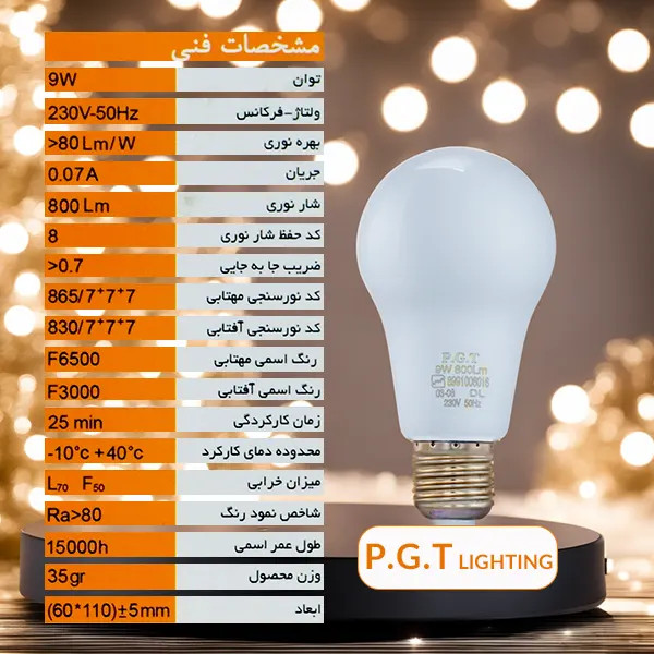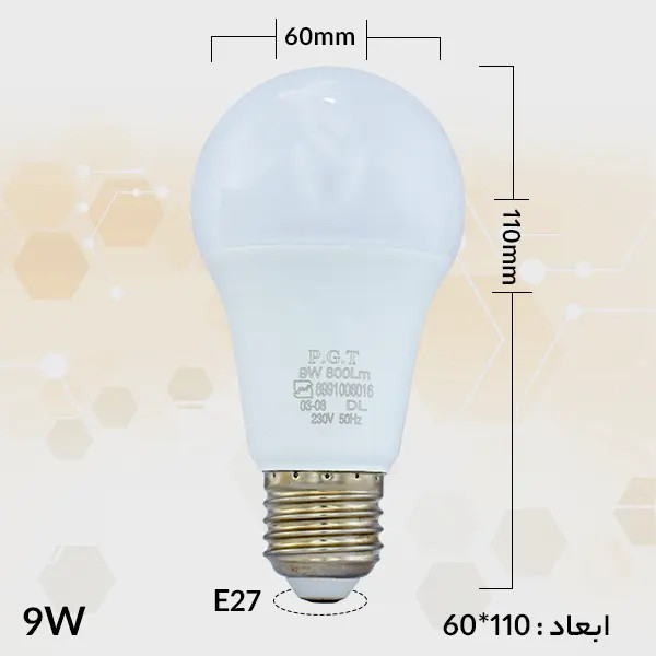 لامپ ال ای دی حبابی 9 وات پی جی تی PGT