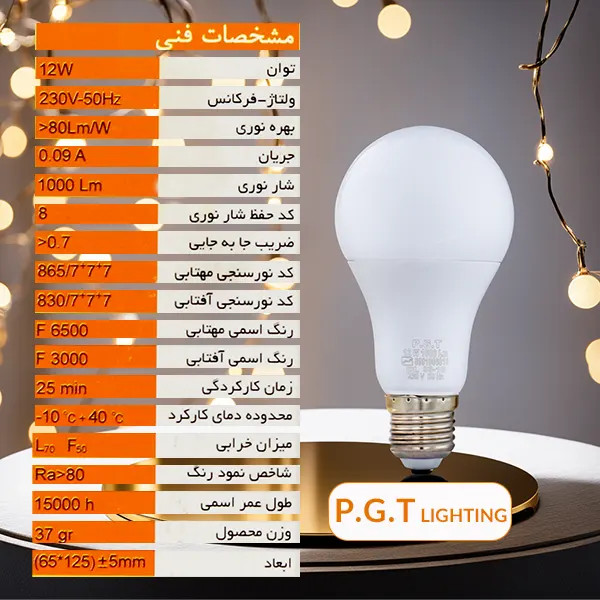 لامپ ال ای دی حبابی 12 وات پی جی تی PGT
