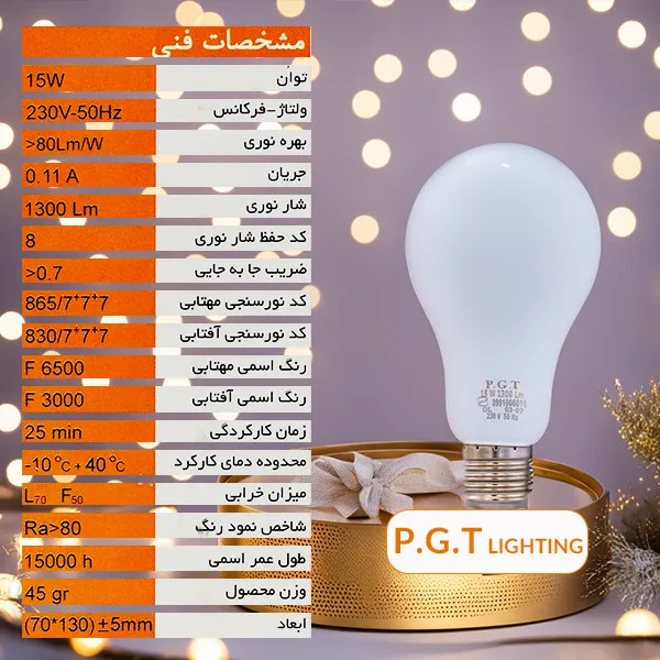 لامپ ال ای دی حبابی 15 وات پی جی تی PGT