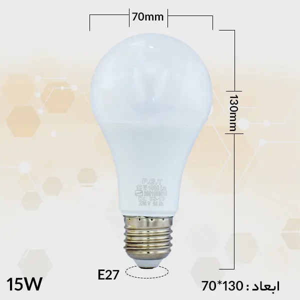 لامپ ال ای دی حبابی 15 وات پی جی تی PGT با سرپیچ استاندارد E27 با طیف وسیعی از سرپیچهای مرسوم در بازار برق ایران سازگار است.