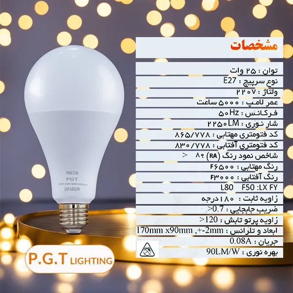 لامپ ال ای دی حبابی 25 وات پی جی تی PGT