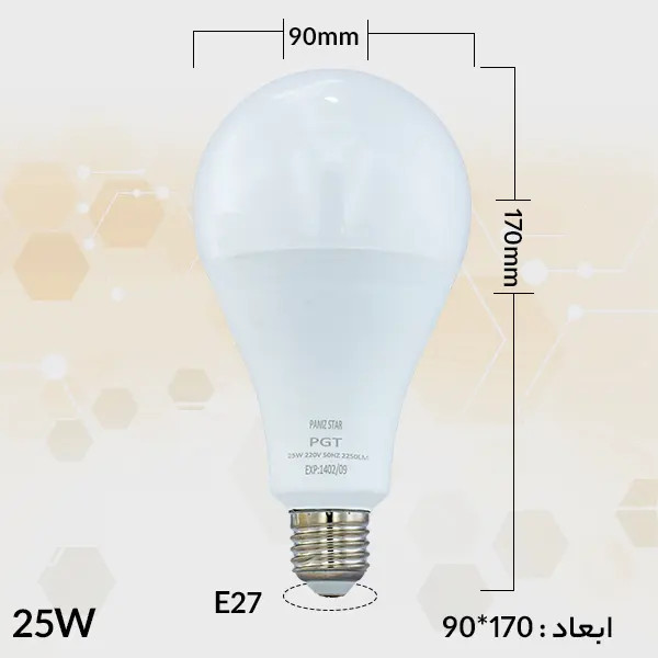 لامپ ال ای دی حبابی 25 وات پی جی تی PGT با سرپیچ استاندارد E27 با طیف وسیعی از سرپیچهای مرسوم در بازار برق ایران سازگار است.