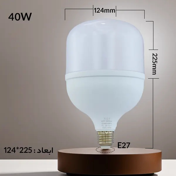لامپ ال ای دی استوانه ای 40 وات پی جی تی PGT با سرپیچ استاندارد E27 با طیف وسیعی از سرپیچهای مرسوم در بازار برق ایران سازگار است.