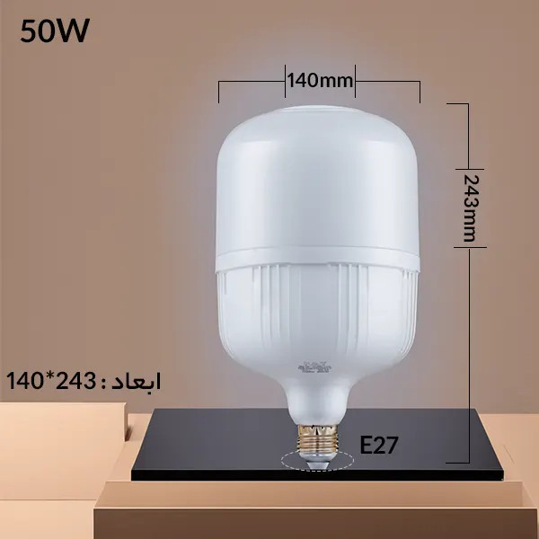 لامپ ال ای دی استوانه ای 50 وات پی جی تی PGT با سرپیچ استاندارد E27 با طیف وسیعی از سرپیچهای مرسوم در بازار برق ایران سازگار است.