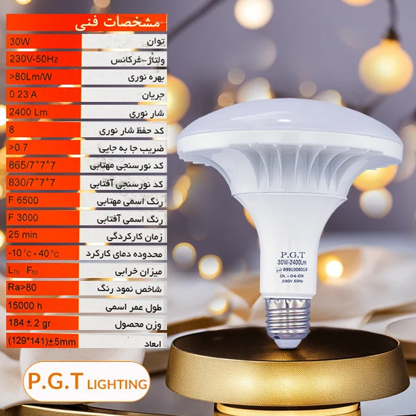 مشخصات فنی لامپ قارچی 30 وات پی جی تی