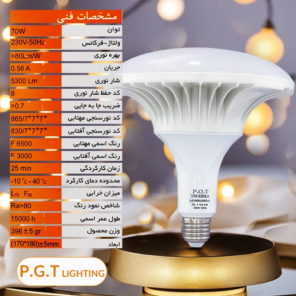 مشخصات لامپ سفینه ای 70 وات PGT