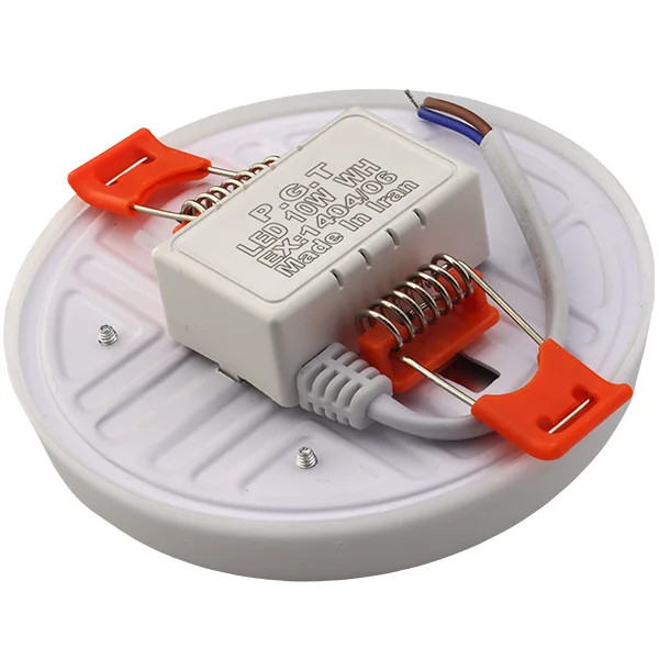 لامپ ال ای دی سقفی توکار سایز شو PGT گرد 10 وات به واسطه داشتن فنر متحرک در برشهای با ابعاد مختلف نصب میشود. این پنل فول لایت گرد را به راحتی میتوان در فضاهایی با برش از 5.2 تا 7.3 سانتیمتر نصب کرد.