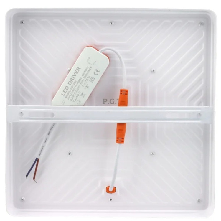 شکل ظاهری: این چراغ پنلی روکار، مربعی شکل است.
