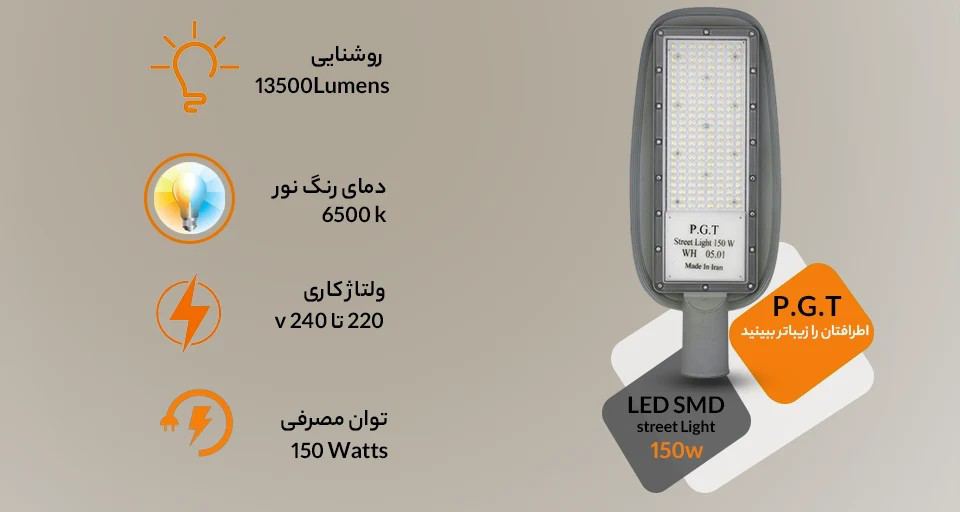 مشخصات چراغ خیابانی 150 وات PGT